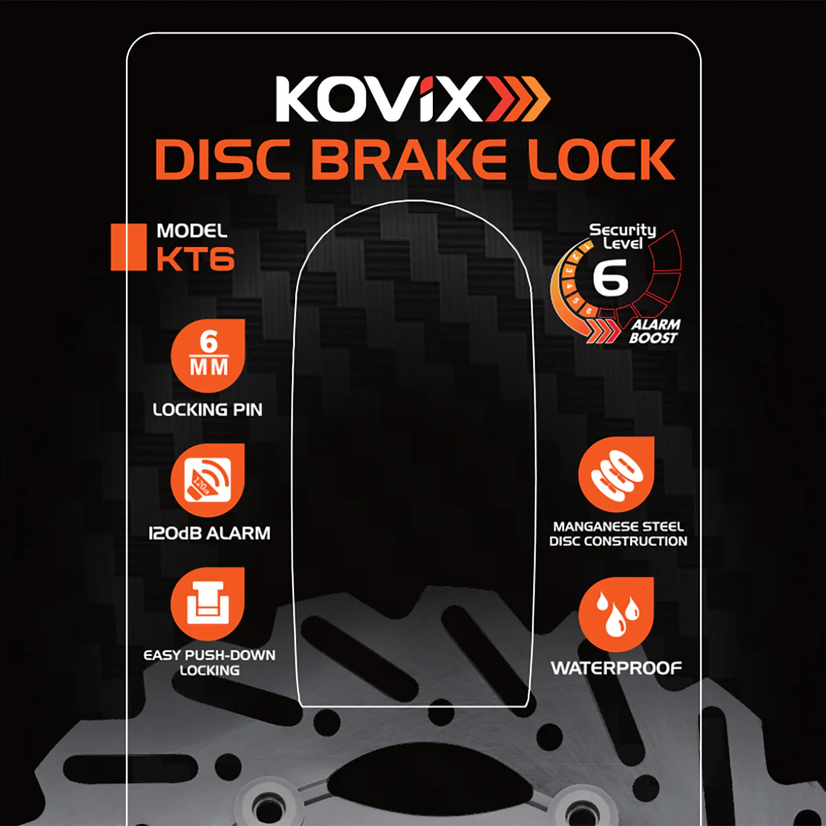 KOVIX Disc Brake Lock With 120dB Anti-Theft Security Alarm (KT6)